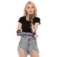 All-Over Print Women's Off-shoulder Cropped Top With Short Puff Sleeve - Electric Linda